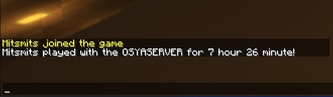 サーバーにログインすると、これまでの累積プレイ時間がチャット欄に表示されます。